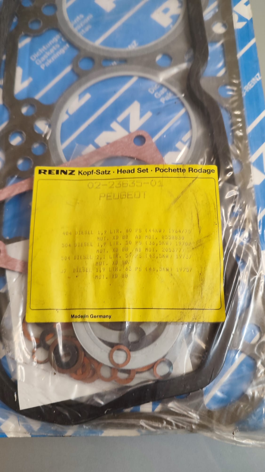 Jogo de juntas completo para Peugeot 404, 504 e J7 Para motores 1.9D e 2.1D